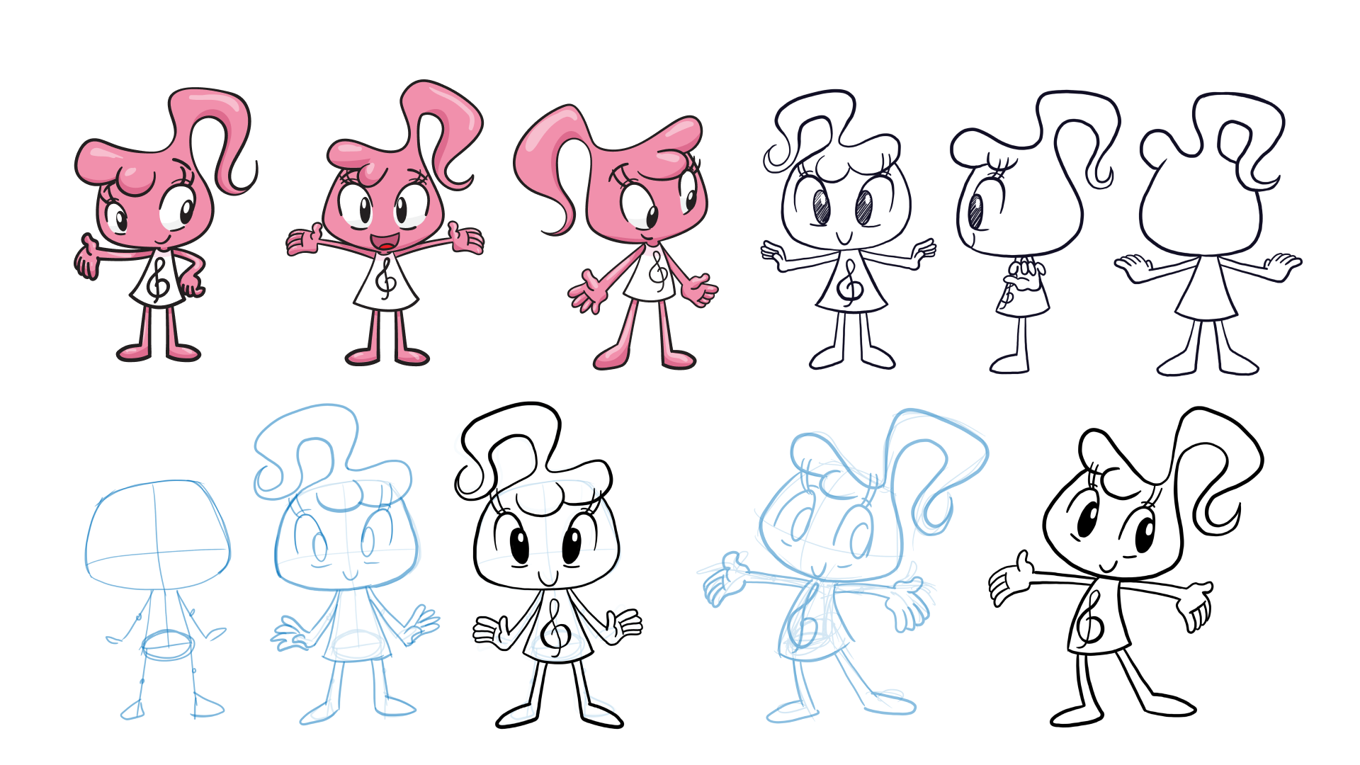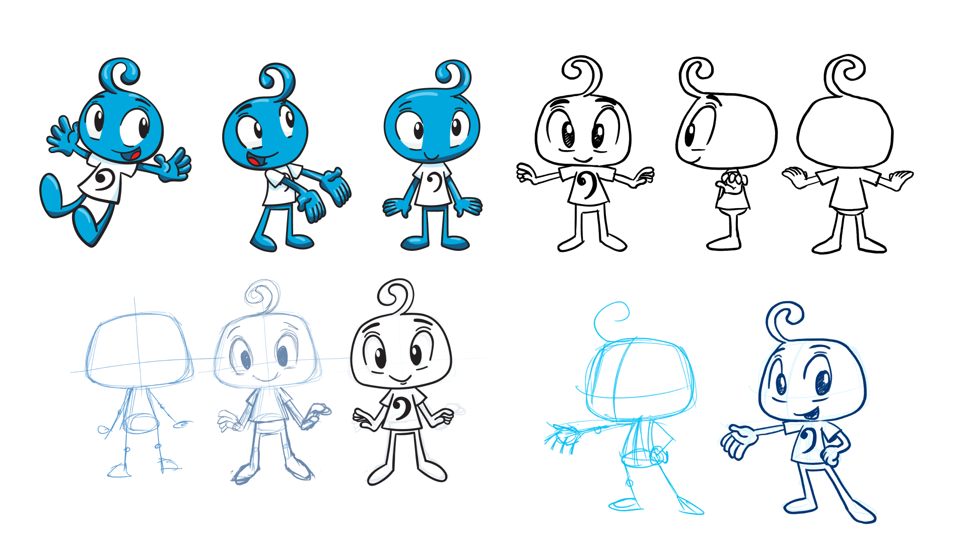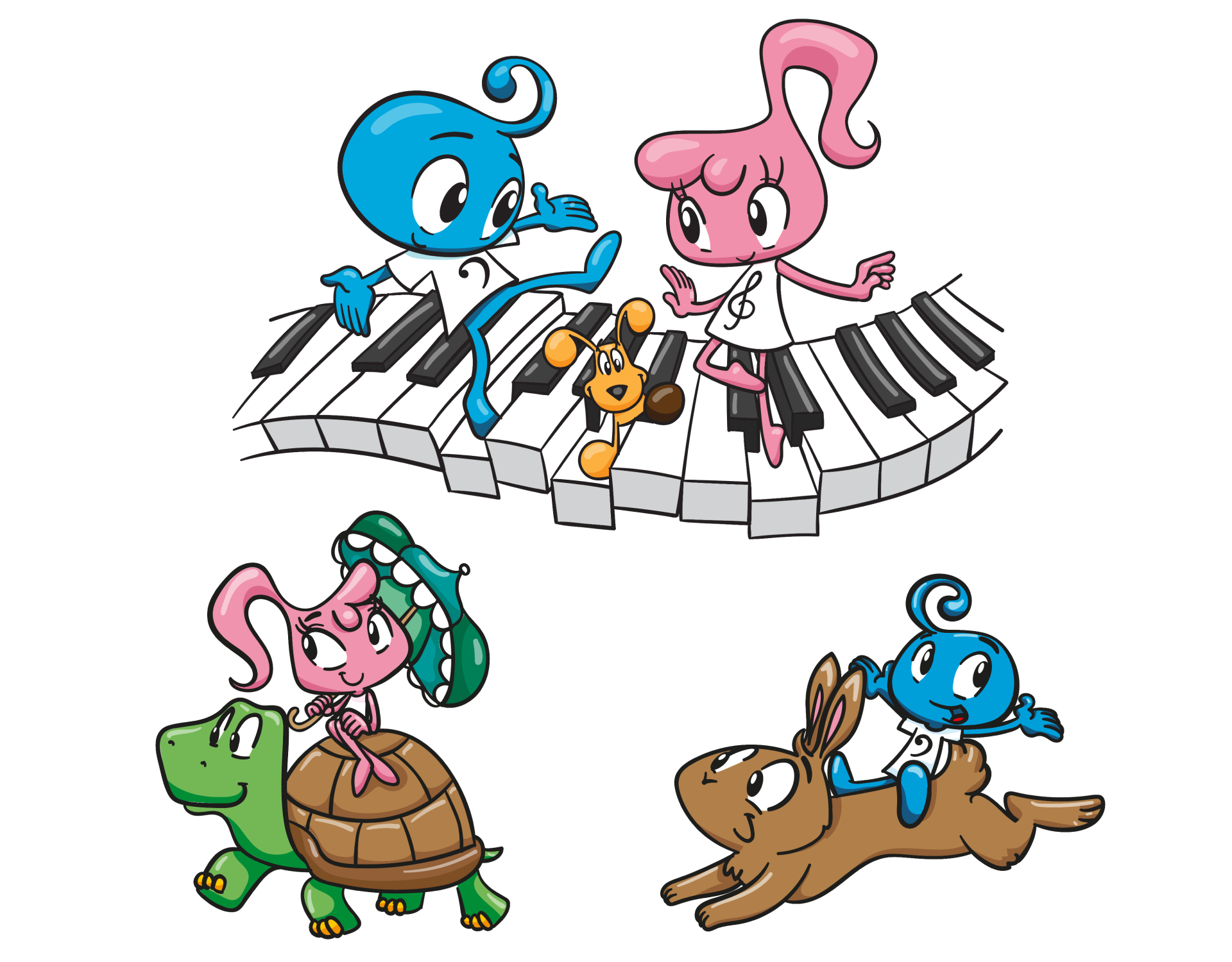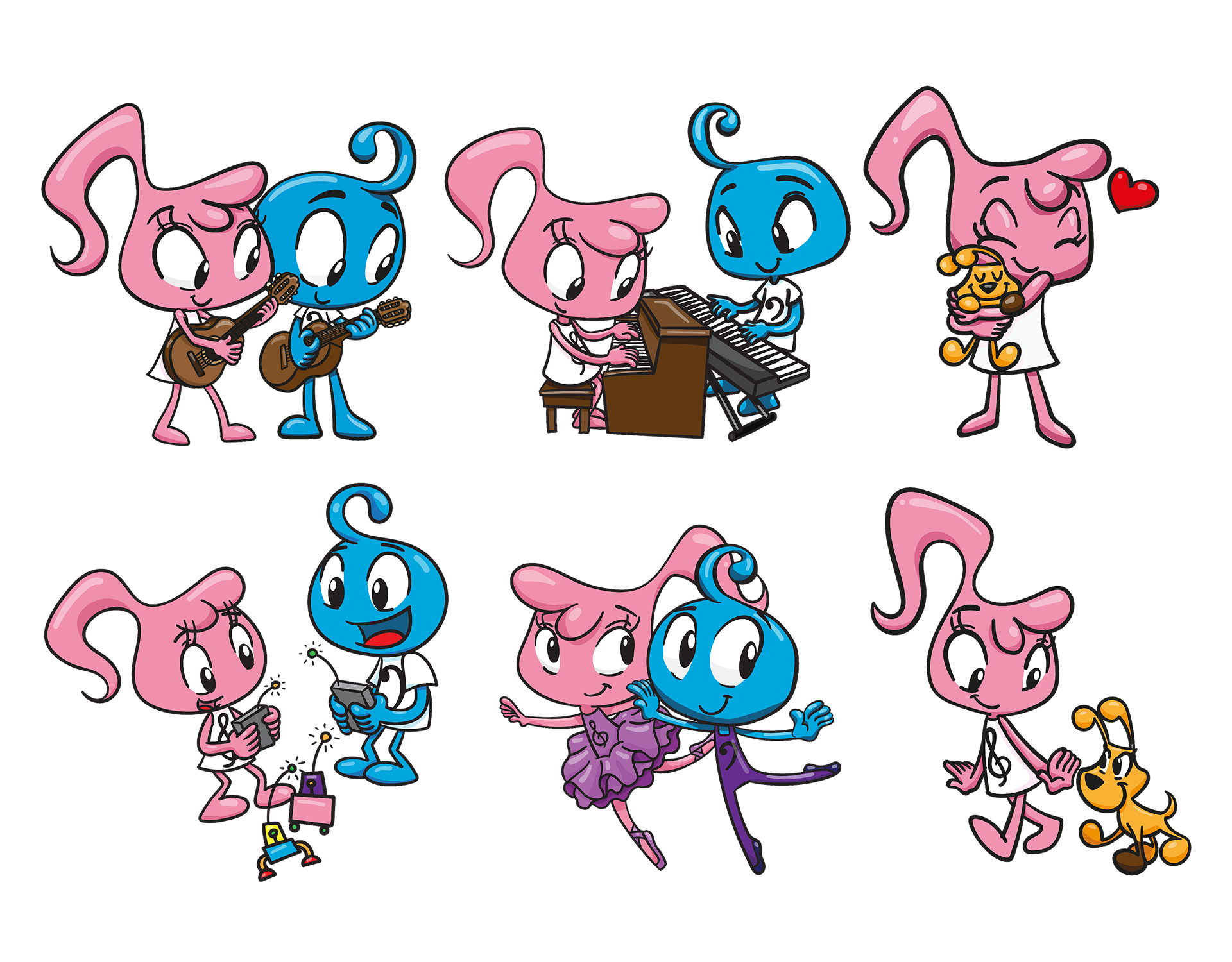 Facu: An eight years old boy, his design was inspired by the Bass clef and the big brother representation, responsible, kind and eager to learn.