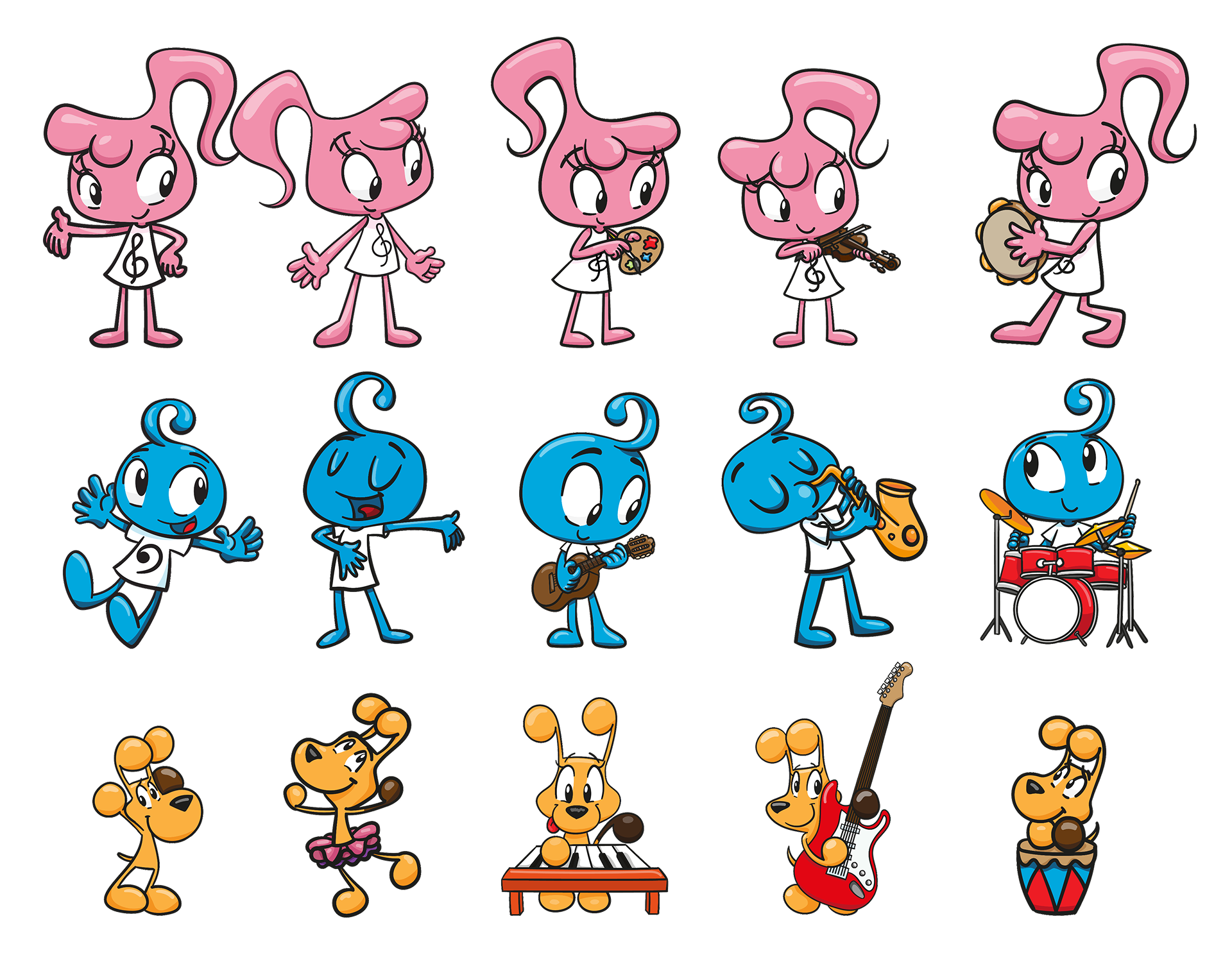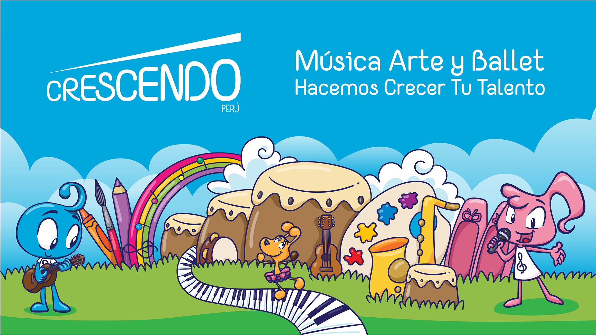 I created the characters for Crescendo Perú, an arts academy based in Lima. The idea was that the characters would be students that guide the kids in all matters of the academy.