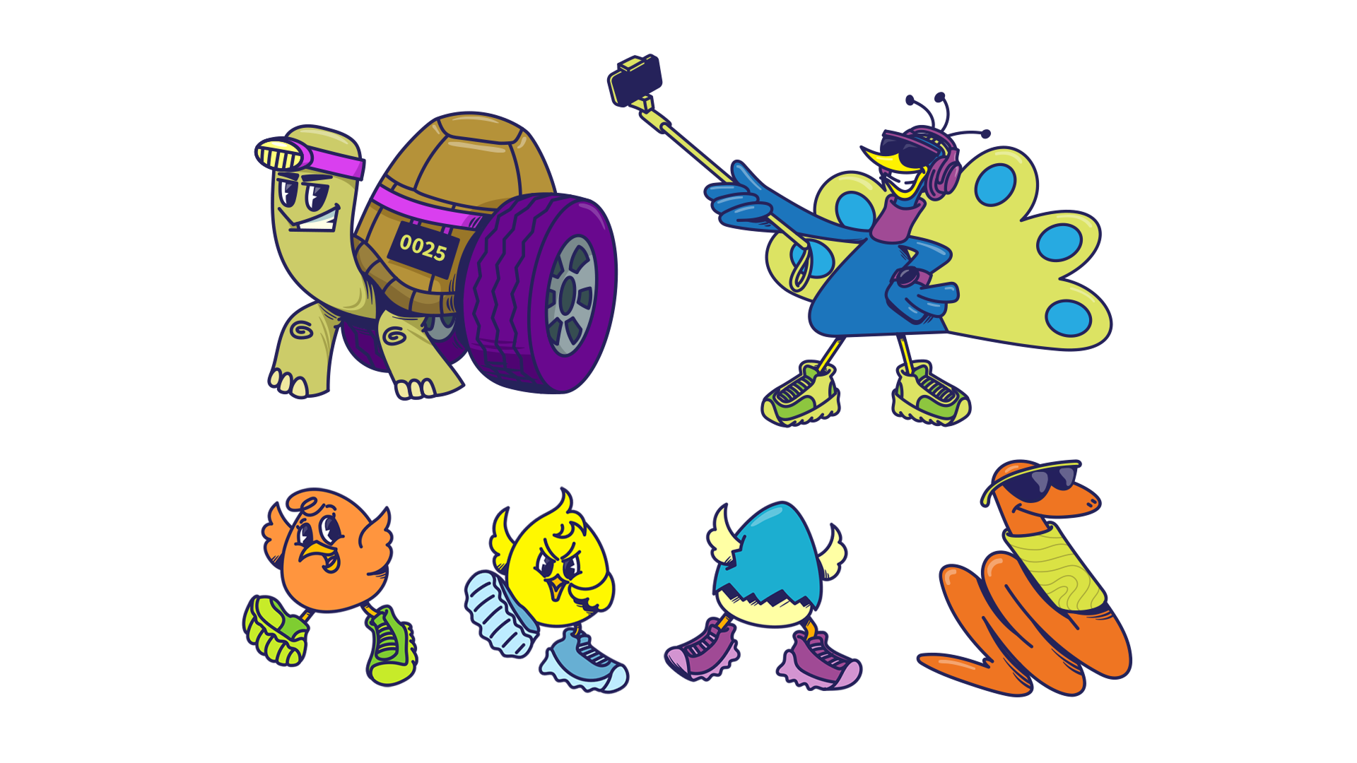 I was invited by Papaya25 to design a group of characters for Trail Botanico an annual event that takes place at the Zulia Botanical Garden. The idea was to represent the different personalities that can be spotted among the participants of the trail, in the form of dynamic and energetic animals that are part of the fauna of the park.